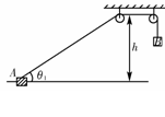 A沿着杆滑到左侧滑轮正下方的过程,绳子拉力对A做正功,A做加速运动,此后绳子拉力对A做负功,A做减速运动.故当θ3 = 90°时,A的速度最大,设为υAm,此时B下降到最低点,B的速度为零,此过程中B下降的高度为h2,则有:mgh2 =