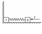 如图所示,A、B两物体用一根轻弹簧相连,放在光滑水平地面上,已知mA = 2mB.A物体靠在墙壁上,现用力向左缓慢推B物体,压缩弹簧,外力做功W,突然撤去外力,B物体将从静止开始向右运动,以后将带动A物体一起做复杂的运动,从A物体开始运动以后的过程中,弹簧的弹性势能最大值为 ( B