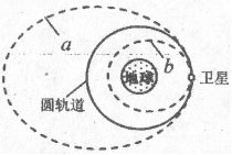22、如图所示,一颗卫星在其圆形轨道上围绕地球做匀