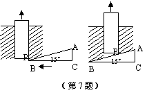 7.如图,将一个Rt△ABC形状的楔子从木桩的底端点P沿水平方向打入木桩底下,使木桩向上运动.已知楔子斜面的倾斜角为15°,若楔子沿水平方向前进6cm(如箭头所示),则木桩上升了( )