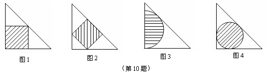 10.如图,甲、乙、丙、丁四位同学从四块全等的等腰直角三角形纸板上裁下四块不同的纸板(阴影部分),他们的具体裁法如下:甲同学:如图1所示裁下一个正方形,面积记为