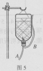 3.图5所示的是医院为病人输液时用的吊瓶,瓶中插入两条管子,A管是输液管、B管是空气管。在输液的过程中,如果发现病人的血液沿输液管回流,可将吊瓶适当地升高,血液就会随着药液重新流入患者的血管而不再回流。这是因为当吊瓶升高后,增大了流入患者血管药液的______ ,阻止了血液的流出。B管的作用是_______