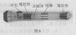 4.图6所示为种环保型手电筒,筒内没有电池。使用时,只要来回摇晃手电筒,使永磁体在手电筒中的两个橡胶垫之间来回运动.灯泡就能发光。而且来回摇晃的越快,灯泡越亮。这种手电筒能发电的依据是_______原理,这个原理足英国科学家_______发现的。