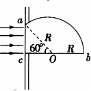 13.(9分)一块用折射率n=2的玻璃制作的透明体,其横截面如图所示,ab是一半径为R的圆弧,ac边与bc边垂直,∠aoc=60°.当一束平行黄色光垂直照射到ac边上后,ab弧的外表面只有一部分是黄亮的,而其余是暗的,求其黄亮部分的弧长是多少?
