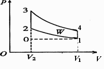 17. (14分)利用燃料燃烧时产生的能量对外做功的机器叫热机.热机是依靠由某些热力学过程组成的特定热力学循环进行工作的.如图所示的p- V图表示的是某一热机的循环图.一定质量的气体(可看成理想气体)由状态2经过状态l至状态4,气体对外做功280 J,吸收热量410 J;气体又从状态4经状态3回到状态2,这一过程中外界对气体做功200 J.求: