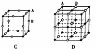 3. 有四种晶体,其粒子排列方式如下图所示,其中化学式不属于AB型的是( )
