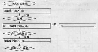 ③分离出Mg(OH)2后的NaCl溶液中还含有CaCl2、Na2SO4等杂质,为了获得NaCl溶液,在分离后的溶液中按照下图所示步骤进行实验即可。请将相关内容填写在图中相应的空格中。