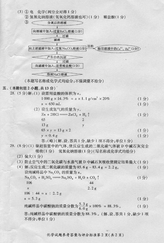 29.侯氏制碱法所得的纯碱中常含有少量氯化钠,现用下图所示装置来测定纯碱样品中碳酸钠的质量分数(铁架台、铁夹等固定装置已略去)。