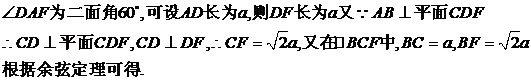 成60°的二面角,则异面直线AD与BF所成角的余弦值