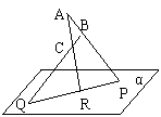 171. 如图:已知△ABC在平面α外,AB∩α=P,AC∩α=R,BC∩α=Q。
