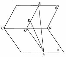 273. 如图9-43,∠AOB是二面角a -CD-b 的平面角,AE是△AOB的OB边上的高,回答下列问题,并说明理由:
