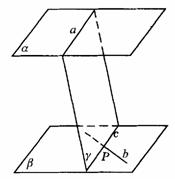 解析:如图答9-29,在b上任取一点P,由点P和直线a确定的平面g 与平面b 交于直线c,则c与b相交于点P.