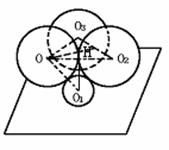 解析: 如图,球O为放置在桌面上与已知三球相切的半径为r的小球,过O作O1O2O3平面的垂线,垂足为H,它一定是ΔO1O2O3的中心,连接O1H,O1O,在RtΔO1OH中,O1H=