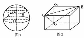 解析:本题关键是求出∠AOB的大小,(如图1)现在我们将这个球的截面问题转化为较为熟悉的长方体问题.如图2,以O1O,O1A,O1B为三条相互垂直的棱,可构造一个长方体,问题转化为长方体截面ABO内求∠BOA的问题.