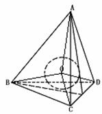 证明: 设球的半径为R,正四面体的高为h,侧面积为S,则有VA-BCD=VO-ABC+VO-ABD+VO-BCD,如图,即