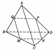 499. 如图9-15,已知A是平面BCD外一点,满足AC=BD,M、N、P、Q分别是BC、CD、DA、AB的中点.求证:QN⊥PM.
