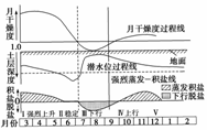 (1)3-6月份,月干燥度过程线、潜水位过程线及积盐(脱盐)线三者之间的关系是 。