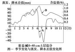 该图反映出的蒸发、降水差值和土壤盐分关系是 。