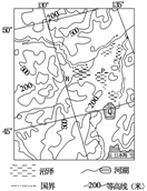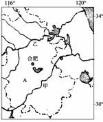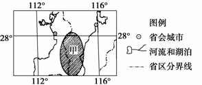 读“某农业低产区(甲地区)的分布地区示意图”,回答(1)-(3)题。