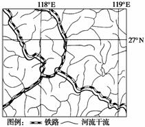 下图是“我国某地区水系和铁路分布图”。读图回答1-3题。