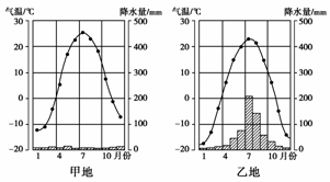 (1)甲地属于 气候,对种植玉米不利的气候条件是 ,适宜发展的农业为 。乙地属于 气候,对种植玉米有利的气候条件是 。中国的玉米带主要分布在东北平原的 平原。