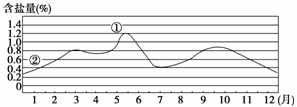 (1)图一中表示蒸发、降水差值曲线的是 ,表示盐分变化曲线的是 。