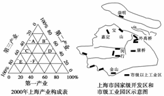 18.读“2000年上海产业构成表”和“上海市国家级开发区和市级工业园区示意图”,回答下列问题。