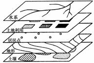 (2008·海南地理)下图示意为某专题研究建立的地理信息系统(GIS)图层。据此完成3-4题。