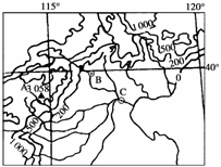 (1)图中字母A处是 山脉,其东西两侧分别为 和 (地形)。