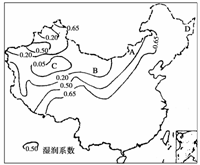 (3)图中D处农业生产的特点是 ;近年来该地区的湿润系数在逐渐降低,制止这种