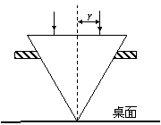 从桌面上有一倒立的玻璃圆锥,其顶点恰好与桌面接触,圆锥的轴(图中虚线)与桌面垂直,过轴线的截面为等边三角形,如图所示,有一半径为r的圆柱形平行光束垂直入射到圆锥的底面上,光束的中心轴与圆锥的轴重合。已知玻璃的折射率为1.5,则光束在桌面上形成的光斑半径为