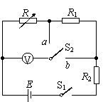⑵甲同学设计了如图所示的电路测电源电动势E及电阻R1和R2阻值。实验器材有:待测电源E(不计内阻),待测电阻R1,待测电阻R2,电压表V(量程为1.5V,内阻很大),电阻箱R(0-99.99Ω),单刀单掷开关S1,单刀双掷开关S2,导线若干。