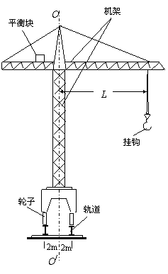 ⑵当起重机挂钩在离中心线OO/10 m处吊起重为G=100 kN的重物时,平衡块离OO/的距离为6 m,问此时轨道B对轮子的作用力FB时多少?