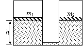 如图所示,两个可导热的气缸竖直放置,它们的底部都由一细管连通(忽略细管的容积)。两气缸各有一个活塞,质量分别为m1和m2,活塞与气缸无摩擦。活塞的下方为理想气体,上方为真空。当气体处于平衡状态时,两活塞位于同一高度h。(已知m1=3m,m2=2m)