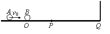 在光滑的水平面上,质量为m1的小球A以速率v0向右运动。在小球的前方O点处有一质量为m2的小球B处于静止状态,如图所示。小球A与小球B发生正碰后小球A、B均向右运动。小球B被在Q点处的墙壁弹回后与小球A在P点相遇,PQ=1.5PO。假设小球间的碰撞及小球与墙壁之间的碰撞都是弹性的,求两小球质量之比m1/m2。