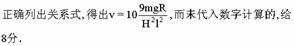 根据ε'=10-8Hlv,求v部分:3分;只正确列出式子,给2分.