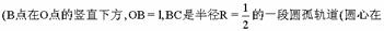 四、[13分]有一质量是m的小球Ⅰ用长度是l的绳子悬挂在O点.把球Ⅰ拉到A点,OA是水平线,如图所示.另一质量相等的小球Ⅱ静止放在B点![]()