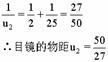 (1)能正确利用公式计算目镜物距,给6分.只正确写出透镜公式,不知道目镜的像是虚像,须用负数代入的,只给2分.如果说明是虚像,但未用负数代入的,给3分.透镜公式写错但知道目镜所成的像是虚像,像距用负数计算的,给2分.