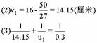 v2=-25厘米,f2=2厘米
