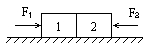 (4)两个质量相同的物体1和2紧靠在一起放在光滑水平桌面上,如下图所示.如果它们分别受到水平推力F1和F2,且F1>F2,则1施于2的作用力的大小为: