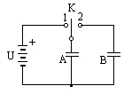 (3)在右图所示的电路中,直流电源的电压为U=18伏特,电容器A和B的电容分别为CA=20微法和CB=10微法.开始时,单刀双掷开关K是断开的,A和B都不带电.