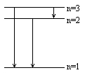 (2)中,正确画出能级图并且标明三个量子数n=1、2、3和三条光谱线的,给3分.每缺一条谱线扣1分,缺量子数或量子数不全的扣1分,总共最多扣3分.