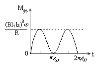 (3)中,得出M外表达式(g)或(h)的,给2分;作出M外-t曲线的,再给2分.在图上,将2π/ω标作π/150以及将(Bl1l2)2ω/R标作0.6的,同样给分.曲线上只要t=0、π/2ω、π/ω、3π/2ω、2π/ω各时刻的M外值正确,形状虽与正弦平方曲线稍有出入,不扣分.所得M外表达式与(g)式或(h)式差一负号,并且曲线全在横轴下方的,不扣分.