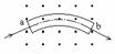 (3)ab是一弯管,其中心线是半径为R的一段圆弧.将它置于一给定的匀强磁场中,磁场方向垂直于圆弧所在平面(即纸面)并且指向纸外:有一束粒子对准a端射入弯管,粒子有不同的质量、不同的速度,但都是一价正离子.