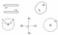 (5)指出下页左图所示的哪些情况中,a、b两点的电势相等,a、b两点的电场强度矢量也相等.
