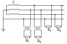 (12)图中S为三相交流电源.连在电路中的各电阻丝B1、B2、B3、B4的阻值都相同.变压器都是电压比为2∶1的降压变压器.这些电阻丝,按消耗功率大小的顺序排列(从大到小)应为
