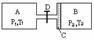(22)图中A、B是体积相同的气缸,B内有一导热的、可在气缸内无摩擦滑动的、体积不计的活塞C,D为不导热的阀门.起初,阀门关闭,A内装有压强p1=2.0×105帕,温度T1=300K的氮气.B内装有压强p2=1.0×105帕,温度T2=600K的氧气.阀门打开后,活塞C向右移动,最后达到平衡.以V1和V2分别表示平衡后氮气和氧气的体积,则V1∶V2= .
