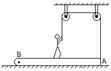 (27)质量为m的运动员站在质量为m/2的均匀长板AB的中点,板位于水平地面上,可绕通过B点的水平轴转动,板的A端系有轻绳,轻绳的另一端绕过两个定滑轮后,握在运动员手中.当运动员用力拉绳时,滑轮两侧的绳都保持在竖直方向,如上右图所示.要使板的A端离开地面,运动员作用于绳的最小拉力是 .