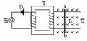 (11)图中T是绕有两组线圈的闭合铁心,线圈的绕向如图所示,D是理想的二极管,金属棒ab可在两条平行的金属导轨上沿导轨滑行,磁场方向垂直纸面向里.若电流计G中有电流通过,则ab棒的运动可能是