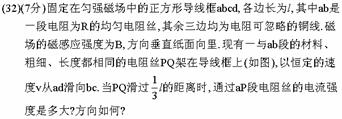 (32)(9分)如图所示,AB、CD是两根足够长的固定平行金属导轨,两导轨间的距离为L,导轨平面与水平面的夹角是θ.在整个导轨平面内都有垂直于导轨平面斜向上方的匀强磁场,磁感应强度为B.在导轨的AC端连接一个阻值为R的电阻.一根垂直于导轨放置的金属棒ab,质量为m,从静止开始沿导轨下滑,求ab棒的最大速度.